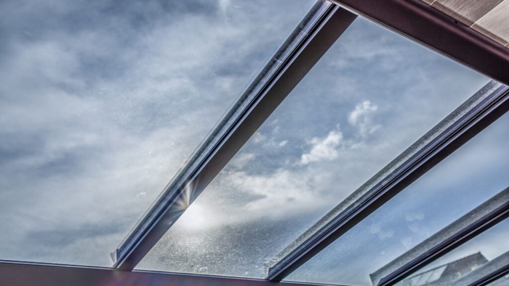 Glastakssystemet monteras alltid på en stomme, och stommens material påverkar både utseende och underhåll. Aluminium är det vanligaste valet för moderna uterum med glastak. Det är underhållsfritt, rostfritt och kan beställas i en lång rad kulörer med lackgaranti som sträcker sig upp till 25 år. Aluminium tål fukt och temperaturväxlingar utan att slå sig eller spricka, och de slimmade profilerna gör att konstruktionen tar minimalt med utrymme jämfört med exempelvis trä.